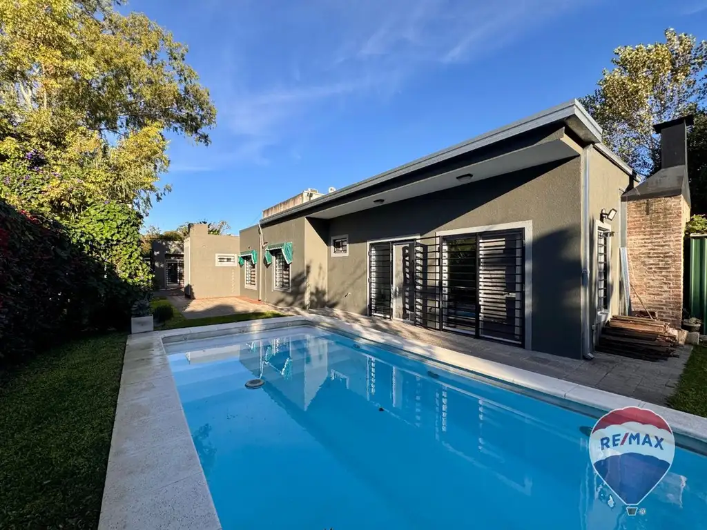 Cuenta con 3 Dormitorios (Principal en Suite con Vestidor); Living-Comedor, Cocina separada con muebles bajo mesada y Comedor secundario; Baño completo; Toilette; Quincho con Cocina, Parrilla y Baño; Parque delantero con Cochera semicubierta para 2 autos; Parque al fondo con Parrilla y Pileta.