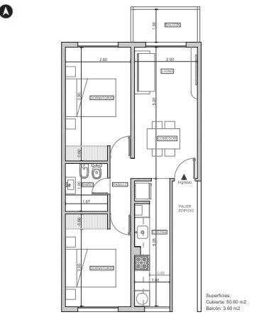 Cuenta con 2 dormitorios, 1 baño completo y una superficie total de 54,20 m² (50,6 m² cubiertos y 3,6 m² semicubiertos). Edificio de 1954, sólido y de buena construcción. El espacio semicubierto aporta un plus para disfrutar de aire y ventilación. Expensas aproximadas: ARS 80.000.
