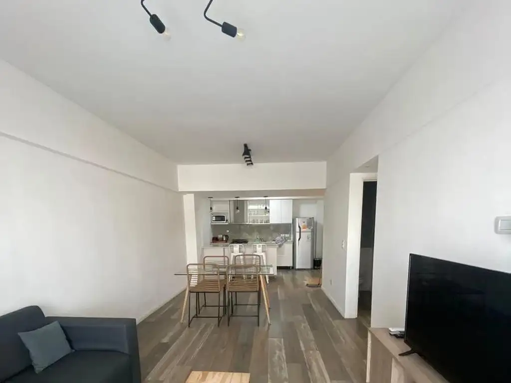 La cocina integrada al living está perfectamente equipada con espacio para lavarropas y separada del comedor diario por una cómoda barra, ideal para disfrutar de un desayuno o de una comida rápida. Desde el living-cocina se accede directamente al balcón, creando un espacio práctico.