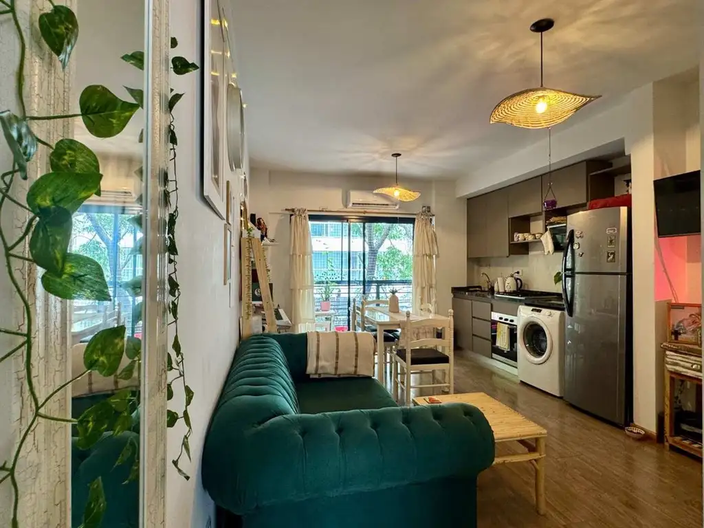 Al ingresar nos encontramos con un living-comedor amplio y muy luminoso, con cocina integrada que optimiza el espacio y brinda una distribución funcional. Cuenta con conexión para lavarropas y salida a un balcón al frente, ideal para disfrutar del aire libre.