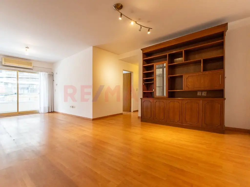 El departamento ofrece una excelente distribución, con doble entrada (principal y de servicio), un amplio living comedor en L con salida al balcón corrido al frente, un dormitorio principal en suite con baño completo y placard de piso a techo, un segundo dormitorio también al frente con ventana al balcón, y un tercer dormitorio con salida al patio. Además, cuenta con una dependencia de servicio que puede utilizarse como otro dormitorio o espacio de trabajo.