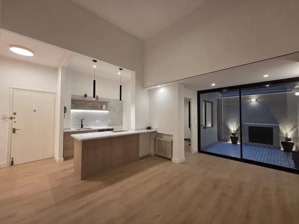 Impecable departamento de 2 ambientes y medio totalamente reciclado con materiales de primerísima calidad en ubicación privilegiada, cercano a los prinicipales medios de transportes, avenidas de interés, comercios.