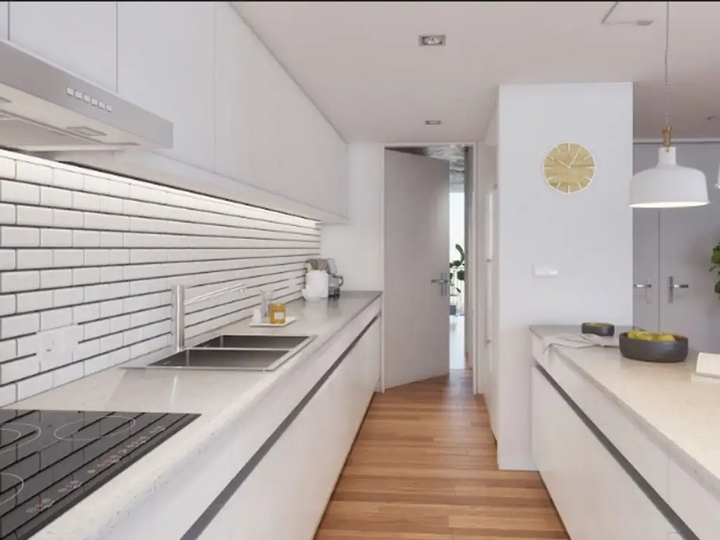 Mueble bajo mesada de melamina blanca exterior e interior.