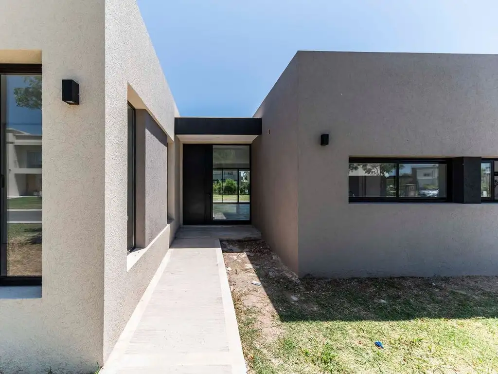 Moderna casa a estrenar ubicada en Pilar del Este, sobre lote interno , desarrollada en una sola planta, con excelente calidad constructiva y diseño funcional, ideal para vivienda permanente o inversión.