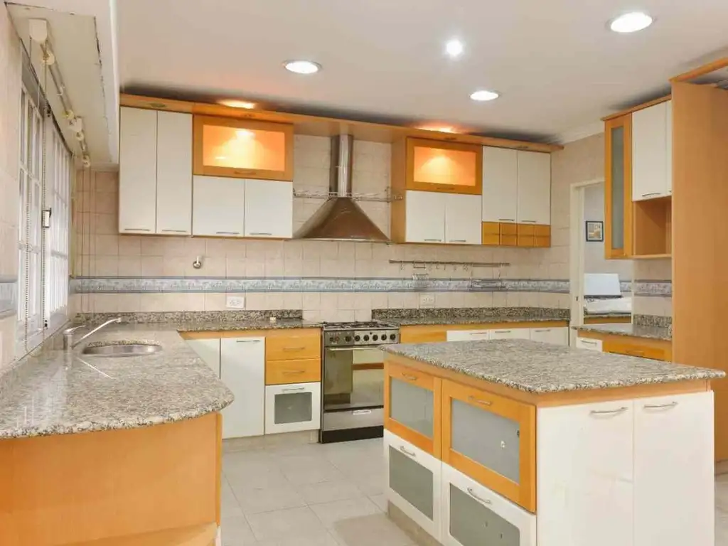 En la planta baja encontramos un amplio living comedor, una cocina equipada con isla, muebles bajo mesada y alacena, y un lavadero integrado. Además, hay un segundo living muy luminoso con vista al frente y un toilette.