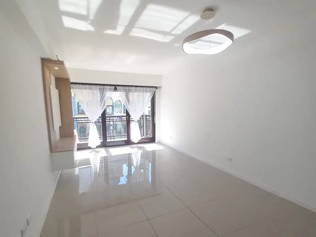 Living comedor externo con pisos de porcelanato. Rack a medida y cortinas a estrenar. Salida al balcon saliente muy luminoso.