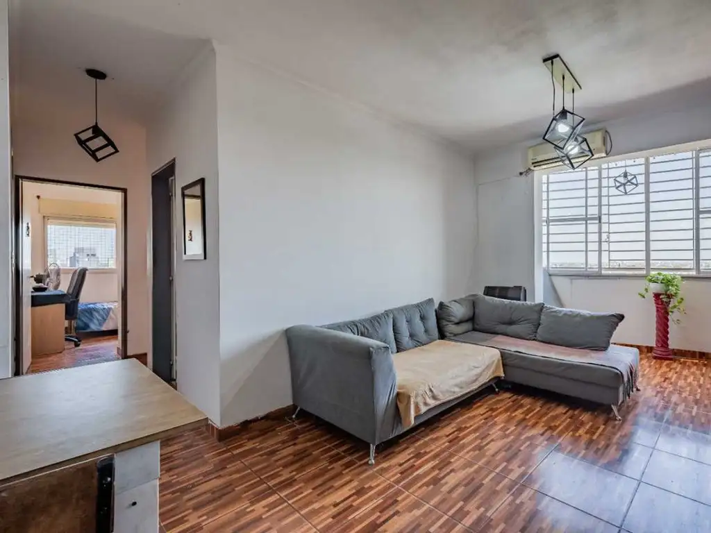 Amplio living comedor con salida a balcón cerrado y vista abierta