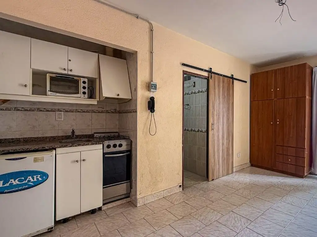 El inmueble presenta una distribución optimizada que integra zona de estar y descanso en un ambiente principal, baño con ducha, cocina equipada con heladera bajo mesada y placard de guardado en la zona de estar. Su estado general es bueno, con una antigüedad de 48 años, correspondiente a una construcción del año 1975.