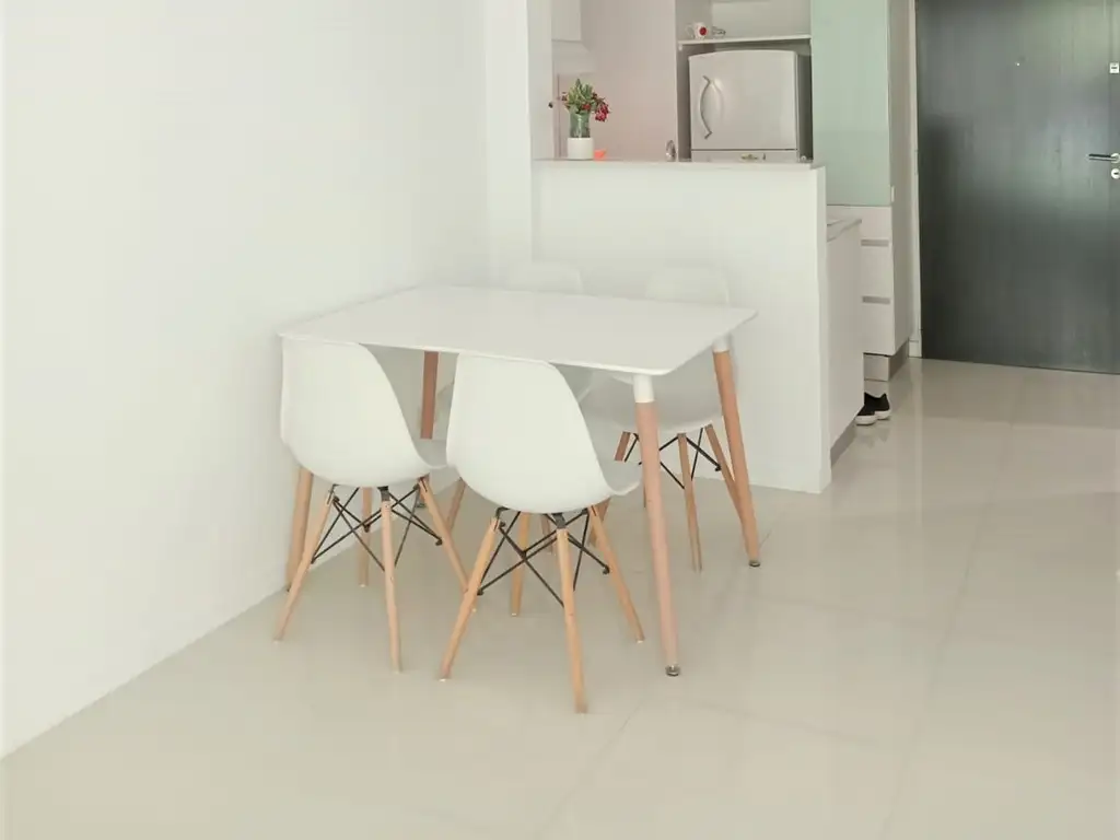 Departamento semi-amueblado: aire acondicionado, heladera, juego de comedor (mesa y sillas), sommier, lavarropas, horno, anafe y cortinas.