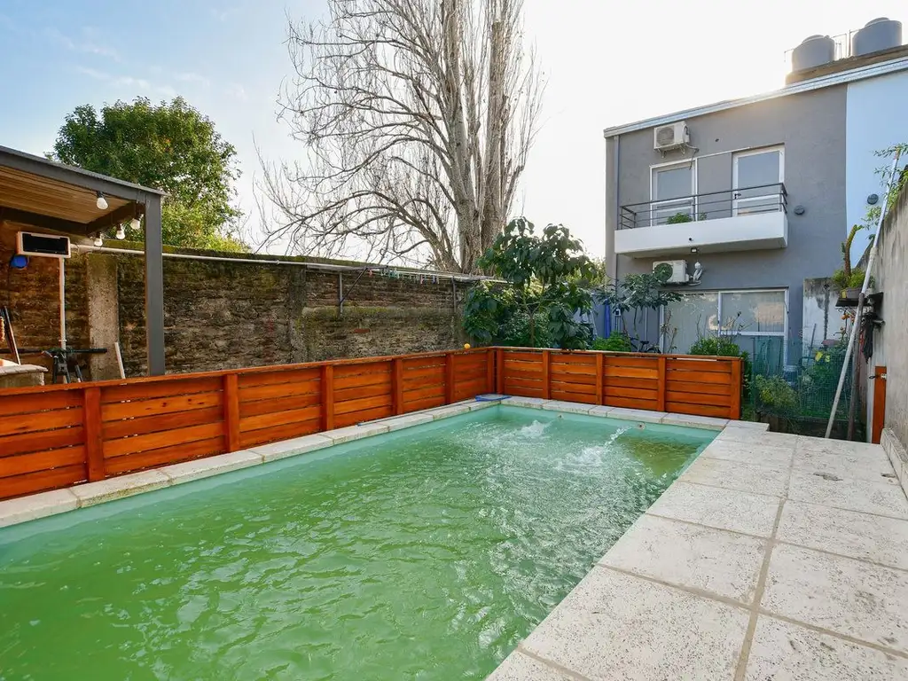 Casa tipo dúplex ubicada en calle 116 entre 34 y 35, Unidad Funcional 2. La propiedad cuenta con 2 dormitorios, baño completo, toilette, cochera semicubierta, parque y piscina.