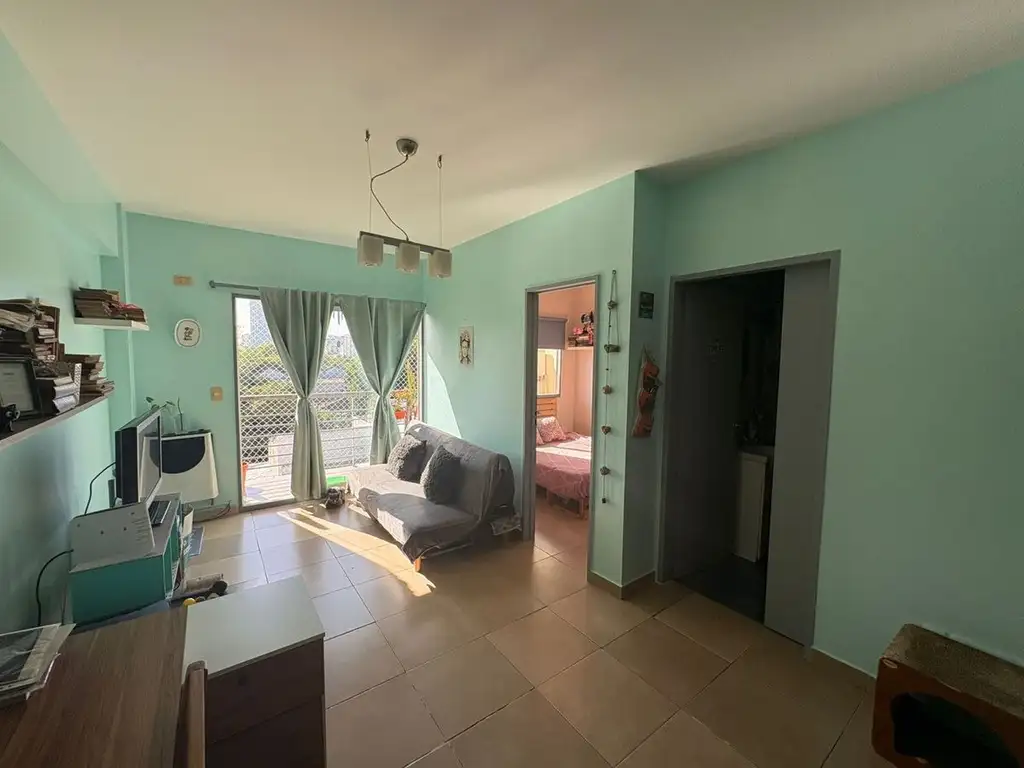 Al ingresar, se dispone una cocina integrada con conexión para lavarropa que conecta con el living comedor. Desde este ambiente se accede al balcón con vista abierta, lo que aporta muy buena luminosidad. La propiedad se completa con un dormitorio de cómodas dimensiones y un baño completo.