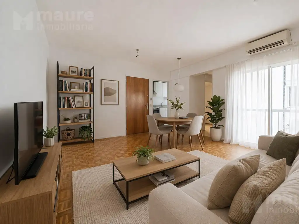 Living comedor con balcón francés, aire acondicionado y excelente ingreso de luz natural.