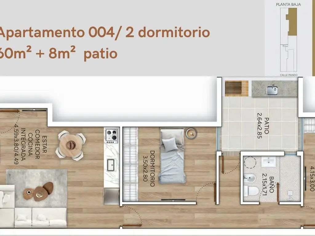 Unidad 04 en planta baja, en un condominio de 8 unidades independientes, sin gastos comunes.