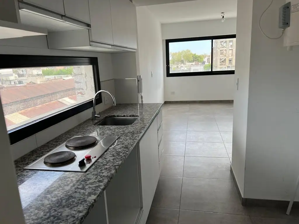 Alquiler mono eléctrico a estrenar con ascensor. Cuenta con termotanque eléctrico , anafe , placard y vista despejada a la ciudad , luminoso y ubicado en excelente zona . El edificio tiene una terraza con vista a la ciudad y parrillero . En los gastos centrales estan el API , AGUA Y TGI . El contrato es por dos años con renovacion cada 4 meses