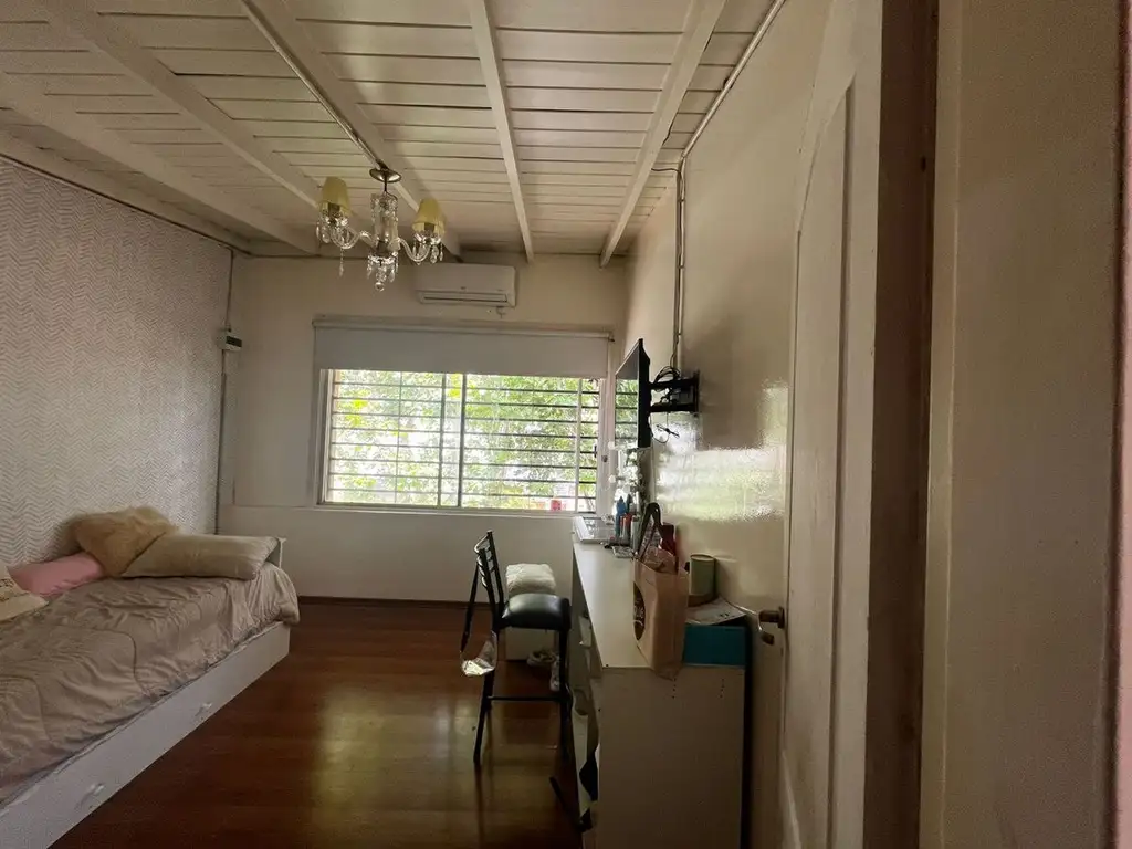 3 habitaciones amplias y luminosas, con pisos de madera y grandes ventanales que brindan vista al exterior.