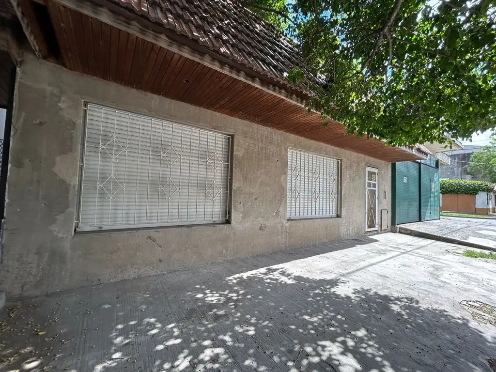 Propiedad en esquina con gran potencial y múltiples posibilidades de uso: vivienda principal en planta baja de 4 ambientes y planta alta con unidad funcional; garaje de grandes dimensiones con ingreso mediante portones en la esquina y proyección para locales comerciales.