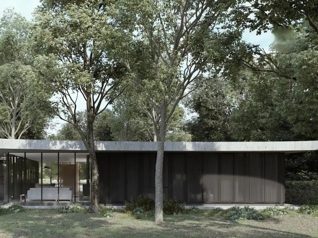 Casa desarrollada en una planta. Proyecto organizado en torno a un patio interno central que vincula los ambientes y permite el ingreso de luz natural.