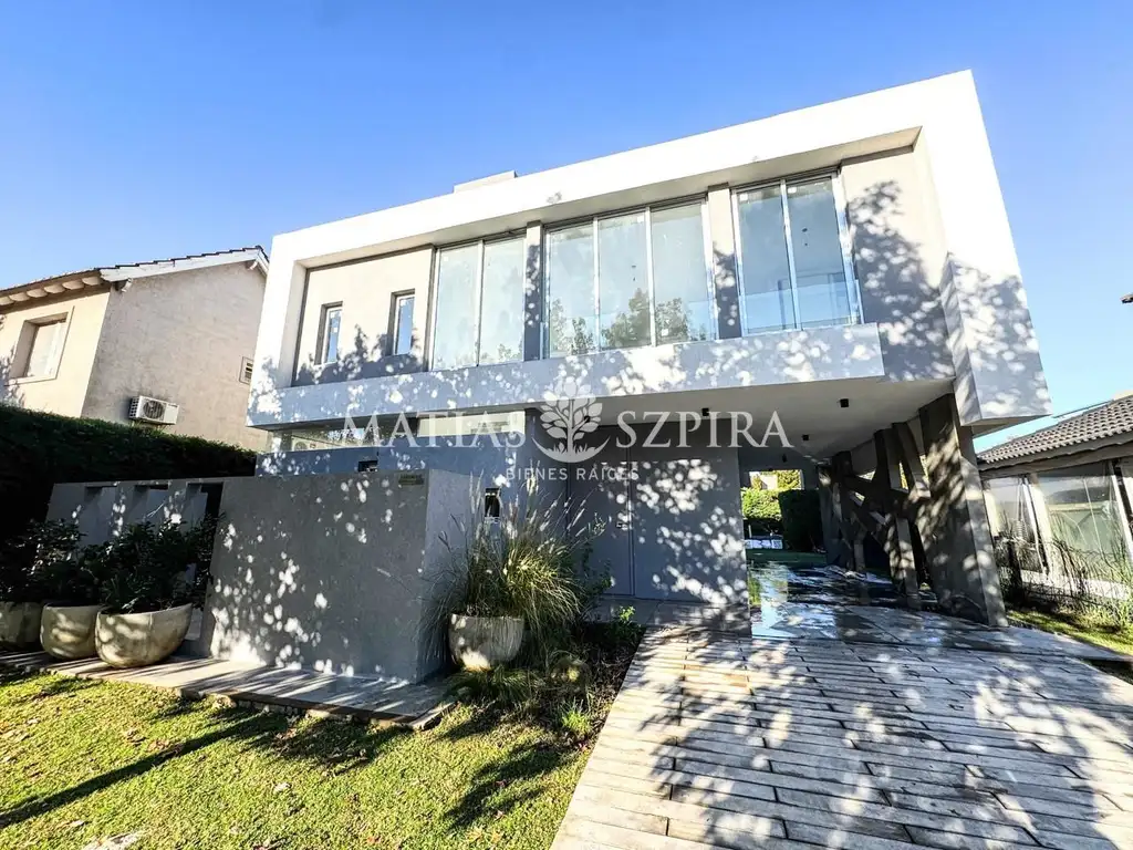 Desarrollada en dos plantas, al ingresar nos recibe la cocina equipada con mesada de mármol negro y barra desayunadora integrada, alto y bajo mesada con múltiples compartimentos, mueble tipo cava, anafe y horno eléctricos y extractor, lavadero y un toilette. Continuando, se presenta un espacio de doble altura, muy amplio y luminoso, funcional a living-comedor con segundo ingreso por ventanales que brindan segundo ingreso desde el parque, con galería, parrilla y piscina.