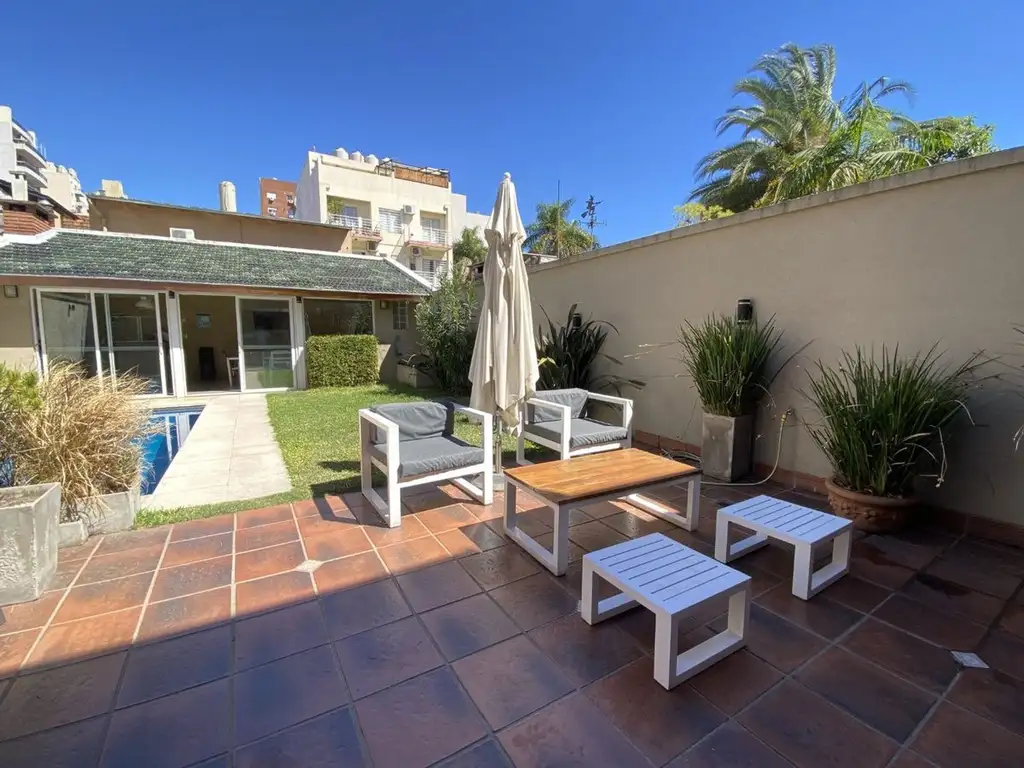 El corazón de la casa se encuentra en su área exterior, pensada para el relax y el encuentro social: jardín con pileta y gran patio. Quincho de ensueño: Cubre todo el ancho del terreno, totalmente equipado y con toilette propio, ideal para eventos durante todo el año.