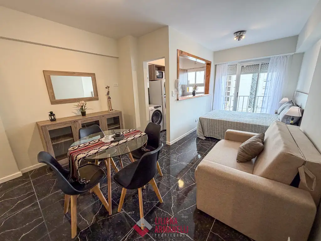 Departamento de 1 ambiente totalmente reciclado. A la calle. Balcón saliente. Cocina separada por barra desayunadora y ventilación natural. Heladera. Lavarropas. Placard. Baño completo con mampara. Muebles a estrenar. 28 mts. Ubicado en Gascón y Arenales.