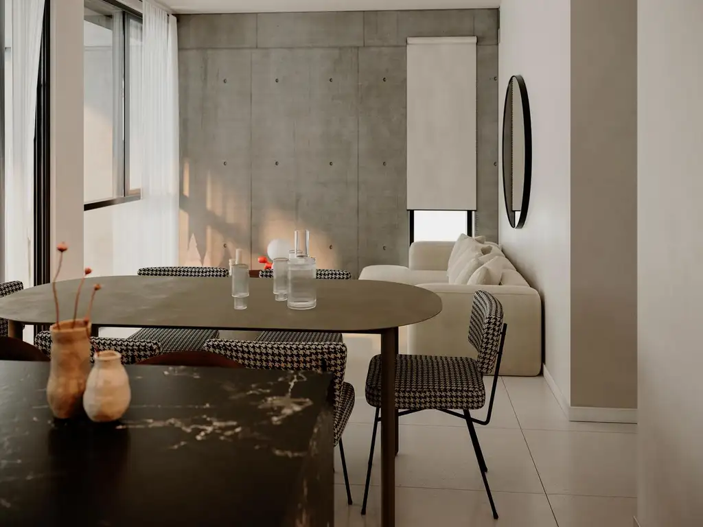 Descripción de las unidades de 3 amb:Se ingresa por cocina integrada al living comedor con muebles bajo mesada y a alacena, mesada de granito con bacha de acero inoxidable y grifería monocomando. Salida a balcón. Baño completo y algunas unidades cuentan con toilette. Dos dormitorios con frentes de placard integral tipo americano en melamina.