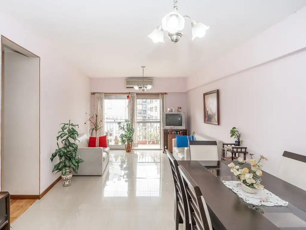 La propiedad cuenta con un amplio living comedor (7 m x 3,5 m) con salida a balcón al frente, lo que le brinda muy buena luz natural. Los pisos fueron renovados y son de porcelanato, en excelente estado de mantenimiento.