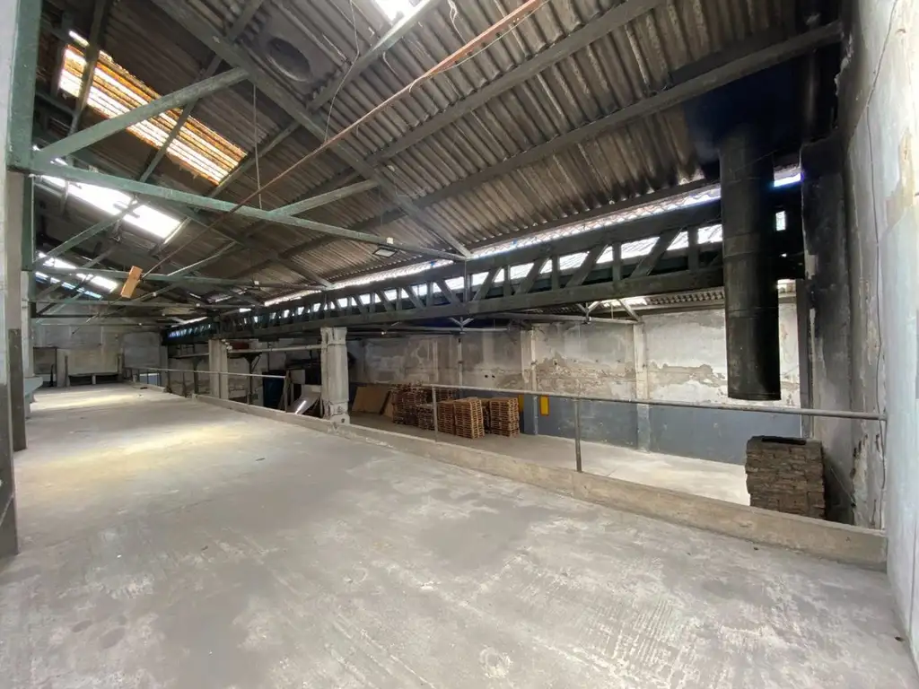 Nave principal, techo a dos aguas de gran altura, con estructura metálica, varias placas traslucidas que aportan iluminación natural. Entrepiso de buen tamaño, con cómodo acceso por escalera.