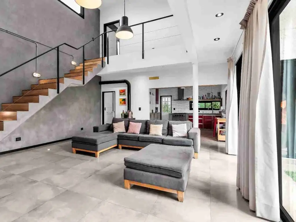 Planta alta desarrolla zona íntima con dormitorio principal en suite con vestidor, dos dormitorios secundarios con vistas exteriores. Terminaciones de alta calidad con ladrillos vistos, microcemento y pisos de porcelanato que aportan calidez y elegancia contemporánea.