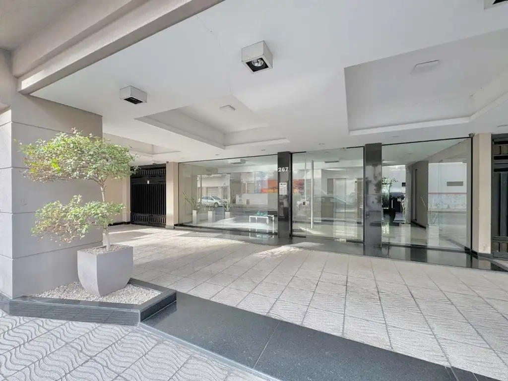 Dispone de dos dormitorios cómodos, dos baños completos y tres equipos de aire acondicionado instalados, lo que asegura confort en todos los ambientes. El edificio ofrece parrilla de uso compartido y la propiedad incluye cochera cubierta.