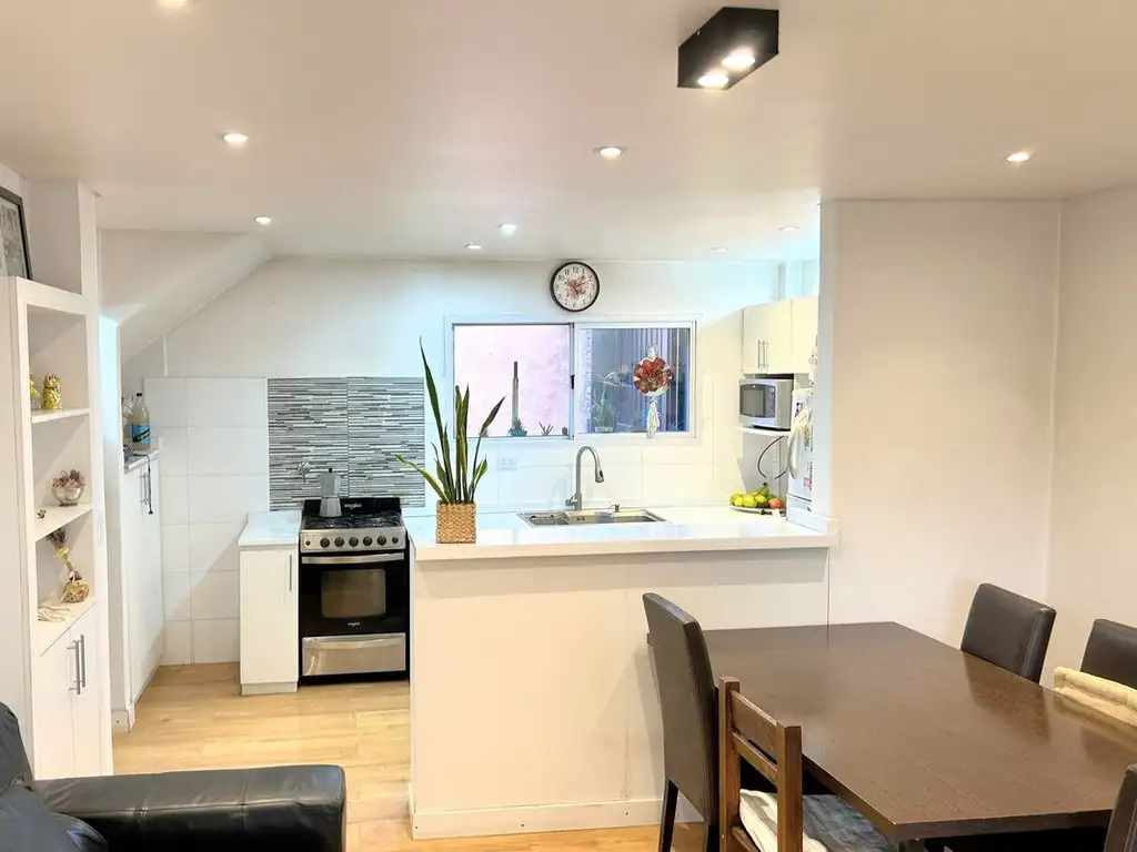 La vivienda presenta una distribución funcional con dos habitaciones amplias, un baño completo y una terraza que expande significativamente los espacios de uso. Construida en 1982, cuenta con una refacción integral que optimiza sus condiciones estructurales y estéticas.