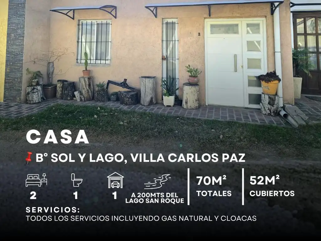 Se encuentra ubicado en B Sol Y Lago, uno de los más buscados y cotizados de Villa Carlos Paz por su entorno consolidado de vecinos residentes, cercanía a la costanera del lago San Roque (200 mts), zona gastronómica, comercial, de colegios nivel inicial y superior, rápida salida a Córdoba (a 600 mts de Av. San Martín) y zonas aledañas.