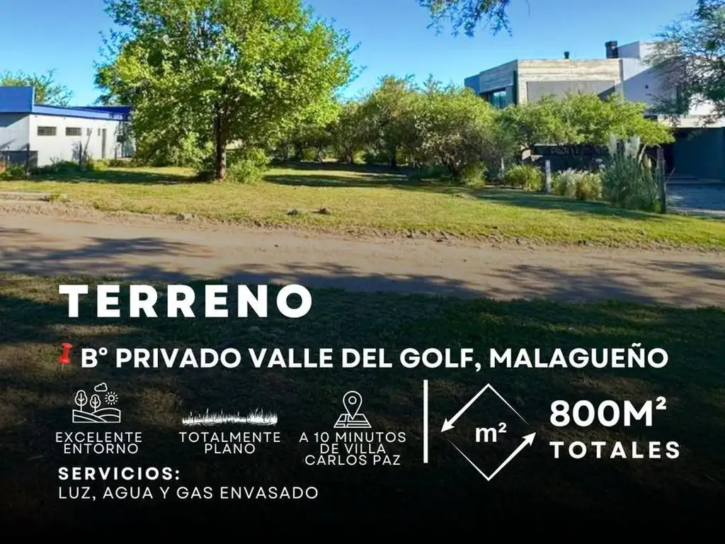 Venta Lote De 800 M² Con Luz, Agua Y Electricidad En Barrio Privado Valle Del Golf – Malagueño