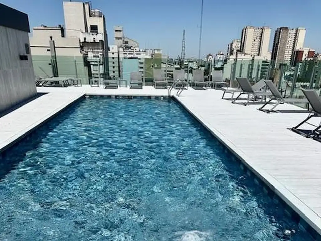 Increible departamento de 2 ambientes con cochera y balcon terraza, con vistas abiertas al pulmon de manzana.