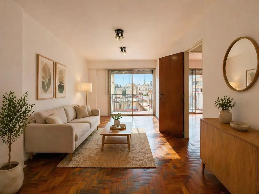 Cuenta con dos dormitorios con placares empotrados y un baño completo. El balcón al contrafrente aporta luz natural y ventilación a los ambientes.