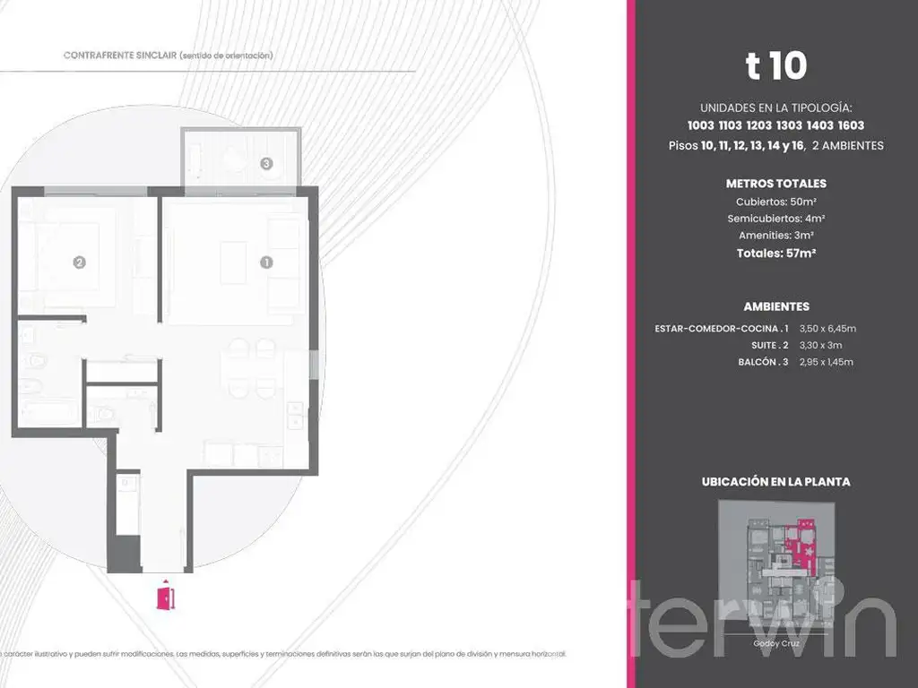 Todas las imágenes, planos, descripciones, y características indicadas son meramente referenciales e ilustrativas y podrán ser modificadas sin previo aviso. Las superficies indicadas son estimadas. Las superficies y medidas definitivas surgirán del plano de mensura final aprobado oportunamente por el GCBA. Las fechas de inicio de obra o posesión son estimadas, podrán ser reprogramadas por la Dirección de obra y dependerán a su vez de un proceso de aprobaciones municipales u otros organismos intervinientes. Los precios indicados podrán modificarse sin previo aviso. El interesado deberá realizar las verificaciones respectivas previamente a la realización de cualquier operación, requiriendo por sí o sus profesionales las copias necesarias de la documentación que corresponda.