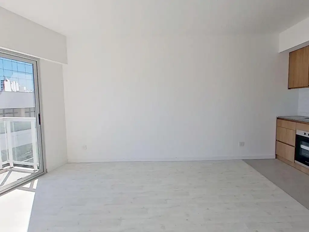 La cocina se integra de manera armoniosa con el living comedor con salida a un amplio balcón.