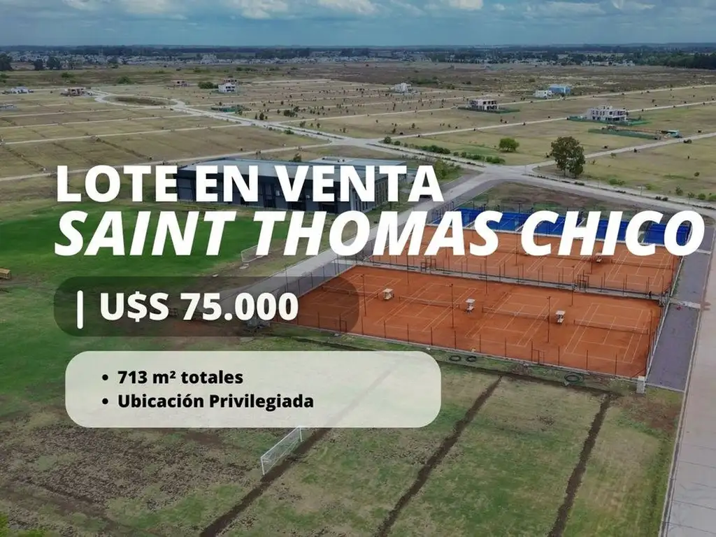 Lote ubicado en en Saint Thomas Chico, Canning. Barrio privado todas las comodidades. El mismo cuenta con 712,63 m² en ubicación estratégica dentro de Saint Thomas Chico. Excelente orientación, ideal para construir tu casa familiar en uno de los barrios más prestigiosos de Canning.