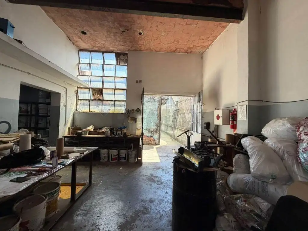 En la parte posterior del lote se encuentra el galpón, un espacio amplio y luminoso gracias a sus ventanas altas, que permiten un buen ingreso de luz natural y ventilación cruzada. Dentro del galpón también se ubica otro vestuario y un sector adicional que puede adaptarse como depósito o incluso como una oficina más, según las necesidades de la actividad. El galpón cuenta con una estructura y techo de losa.