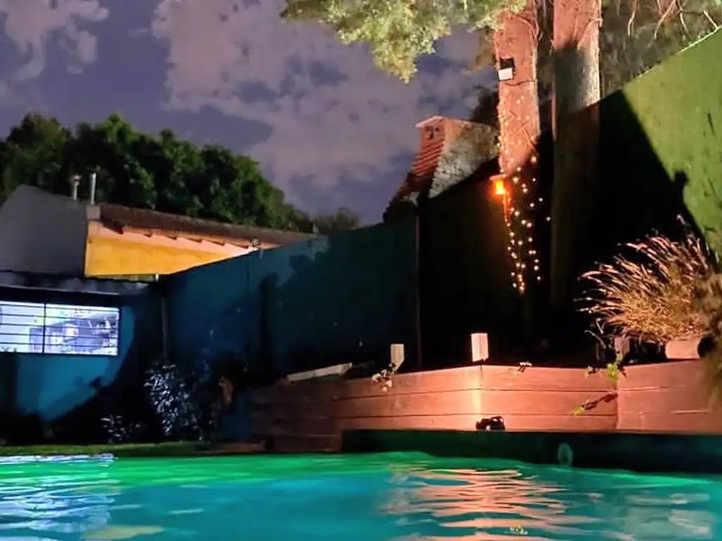 * ÁREA DE PISCINA Y PARQUE: Pileta climatizada de 7 x 3 metros con cascada y luces LED; parque de 30 x 10 metros con grama bahiana y fogonero.