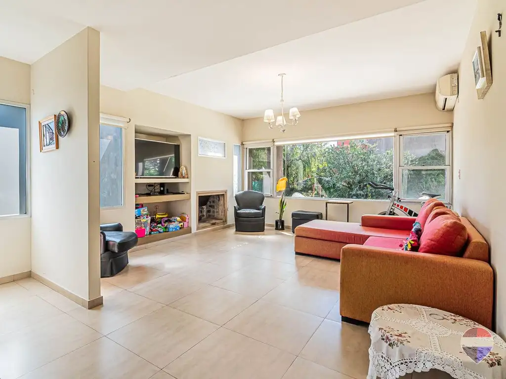 PB: al ingresar nos encontramos con un amplio living con vista al jardín muy luminoso y equipado con estufa hogar. Hacia la izquierda se encuentra el toilette de recepción, y hacia la derecha se ubica la escalera que nos comunica con la planta alta. Seguido nos comunica con la cocina y el comedor, separados ambos espacios por una barra, y un practico sector de alacena. El comedor es muy luminoso con puertas ventanas con salida directa al jardín, y la cocina equipada con muebles sobre y bajo mesada, orientada al frente de la casa.