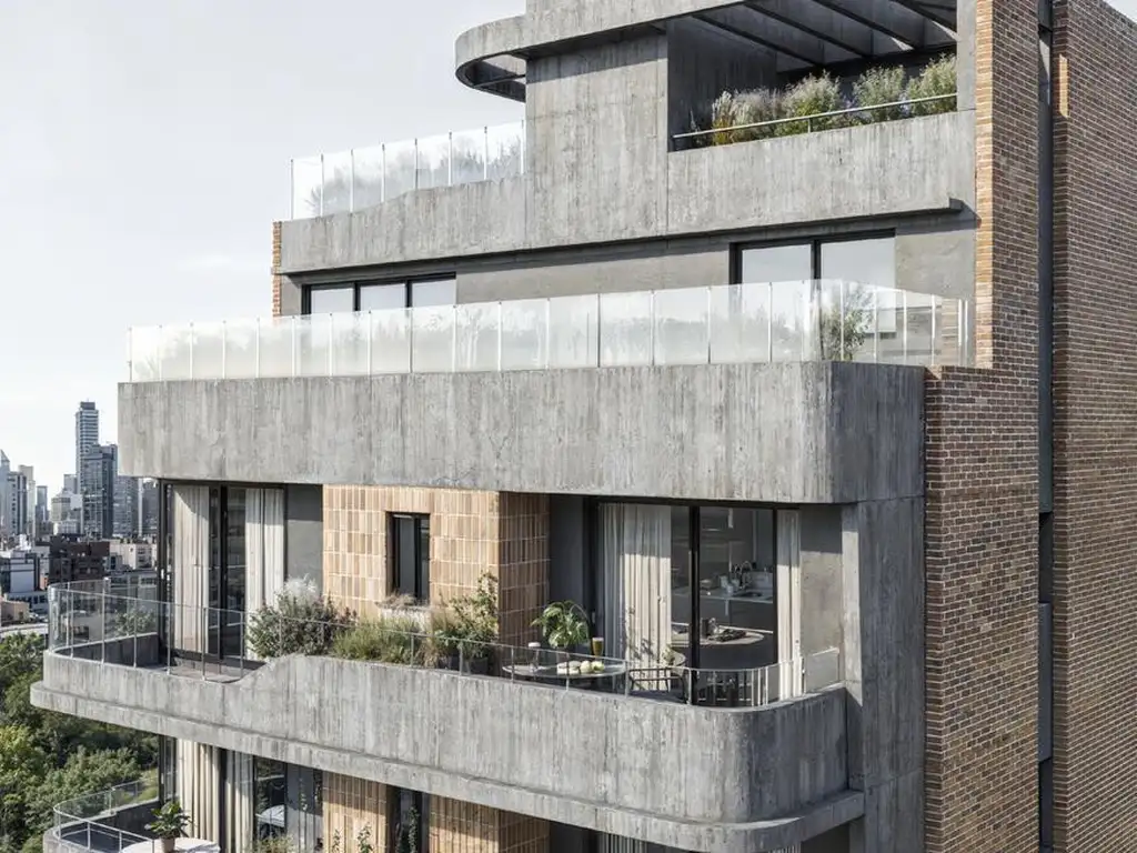 Al ingresar, un hall jerarquizado conecta de manera armónica el interior con el exterior, incorporando vegetación que aporta calidez y serenidad. La impronta verde se extiende a lo largo del edificio con balcones, patios y terrazas que suman más de 595 m2 destinados a áreas privadas al aire libre. Estos espacios se convierten en verdaderos oasis urbanos, ideales para relajarse, trabajar en un entorno natural o simplemente contemplar las vistas panorámicas de la ciudad.