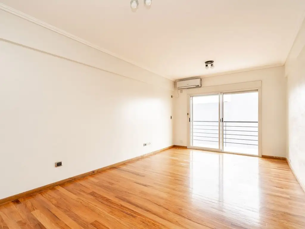 - Living con Gran ventanal y salida al balcón. Pisos de madera.