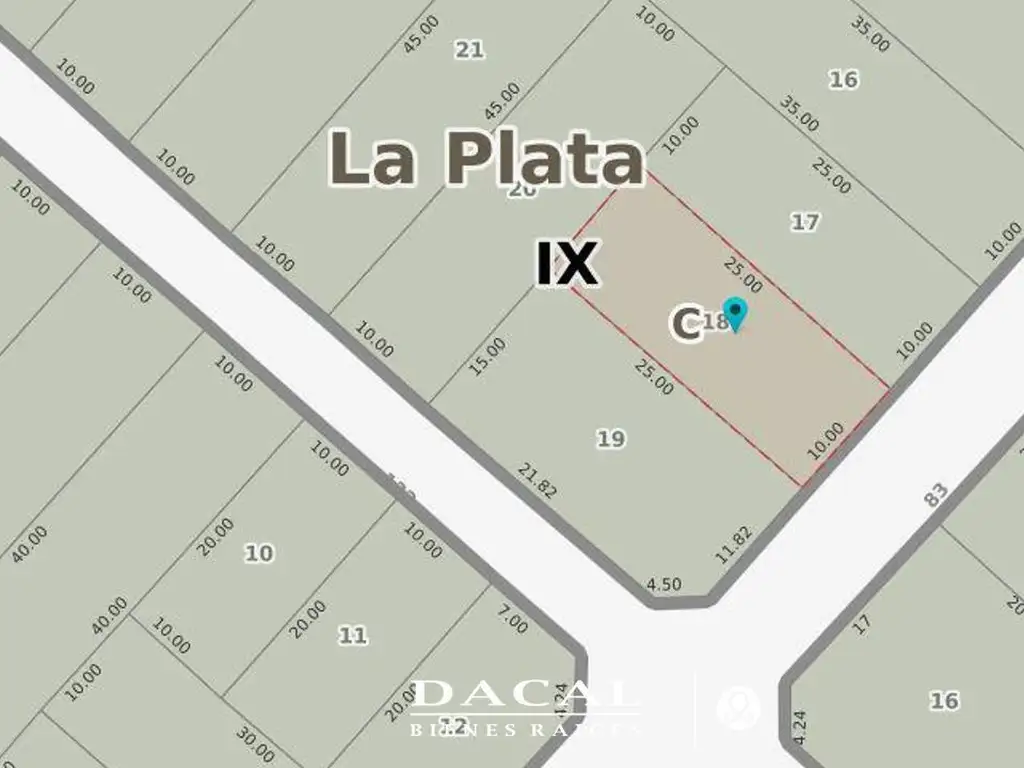 Lote de 250 m2 con 10 metros de frente sobre calle 132 y 25 metros de fondo.