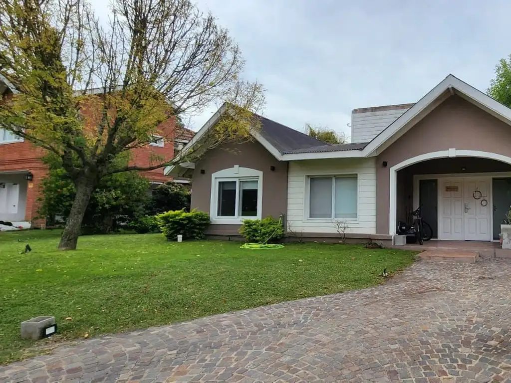 La casa esta desarrollada en una sola planta, sobre lote en esquina, ubicada frente a un amplio espacio verde y al mini mercado del country, en una de las zonas más prácticas y tranquilas del barrio.