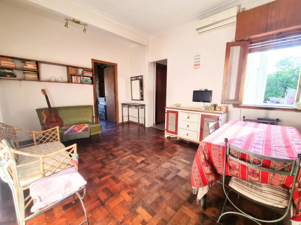 Al ingresar, se destaca un amplio living comedor con pisos de parquet, estufa de tiro balanceado y aire acondicionado. Su ventana con orientación noroeste permite disfrutar de una excelente luz natural por la tarde, generando un ambiente cálido y muy agradable.