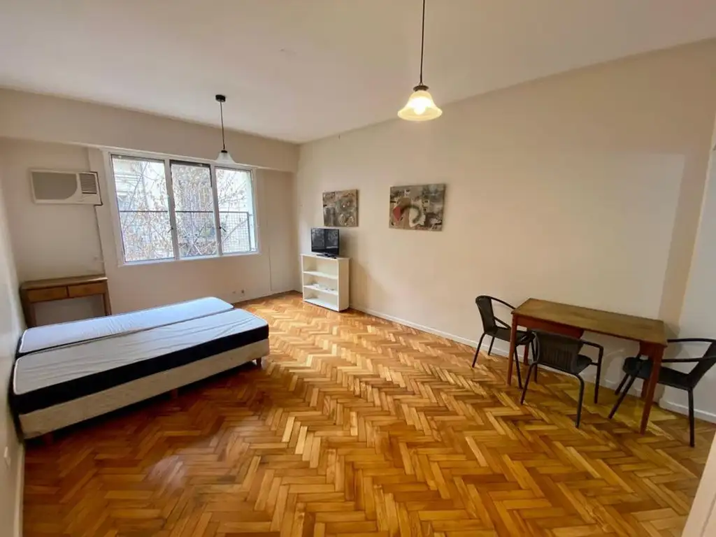 Entrando por la puerta tenemos a la izquierda el ambiente principal de gran tamaño con ventanas a la calle y un placard empotrado. El ambiente esta pintado y con los pisos de parquet recién pulido y plastificado, listo para entrar. El departamento cuenta con balcón estilo francés.