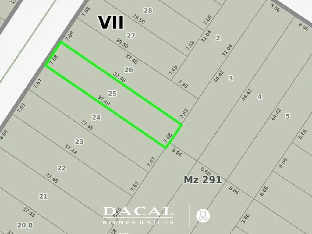 Terreno de 287 m2, con medidas 7,68 x 37,48. Ubicado próximo a Plaza Almafuerte y Av. Génova.