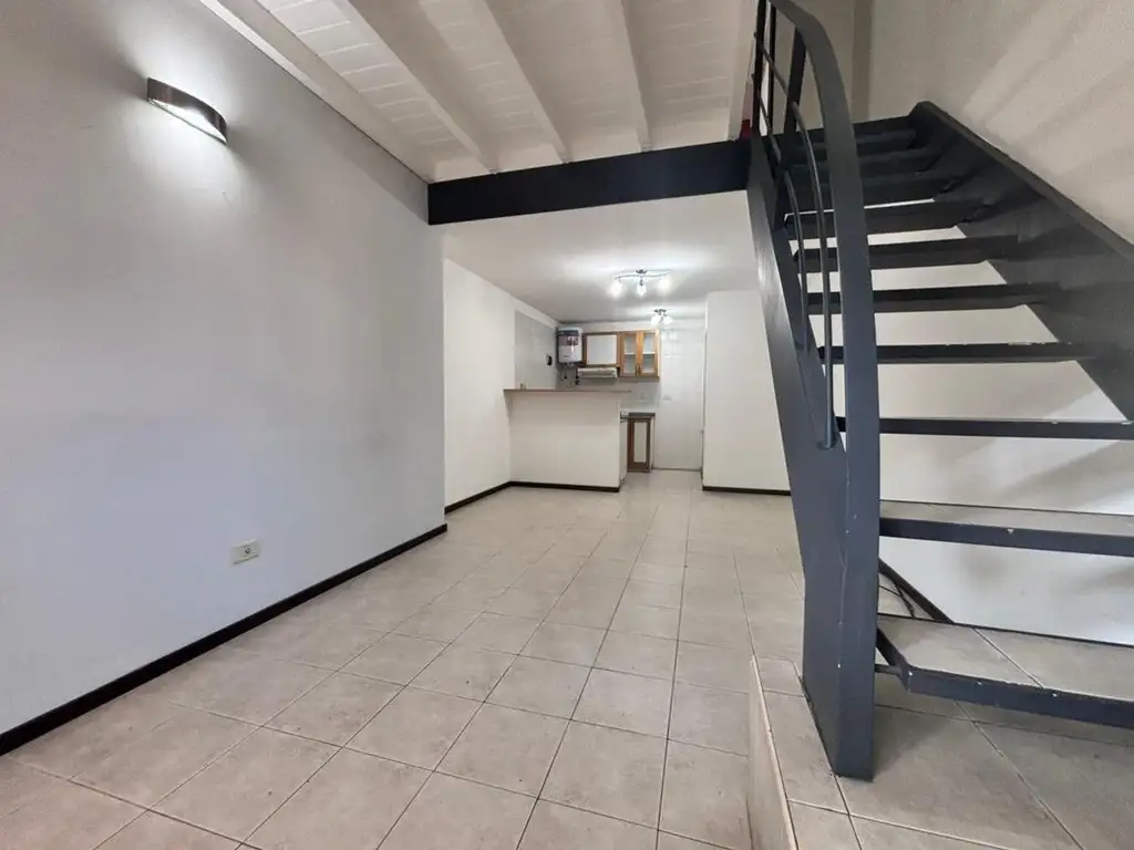 La propiedad se distribuye estratégicamente en dos niveles, ofreciendo una experiencia de habitabilidad contemporánea. En la planta baja, el living comedor integrado con cocina genera un ambiente amplio y luminoso. La cocina, equipada con artefactos a gas, cuenta con alacenas y desayunador que expanden las posibilidades de uso del espacio.