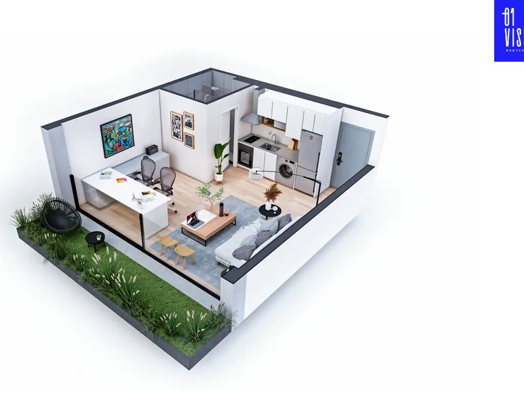Este monoambiente en planta baja ofrece un espacio funcional y bien aprovechado, ideal para vivienda, estudio profesional o consultorio. Cuenta con living comedor con cocina integrada, baño completo y terraza. buena iluminación natural y distribución eficiente que permite múltiples configuraciones. Sistema de domótica, pre instalación para aire acondicionado y lavarropas.