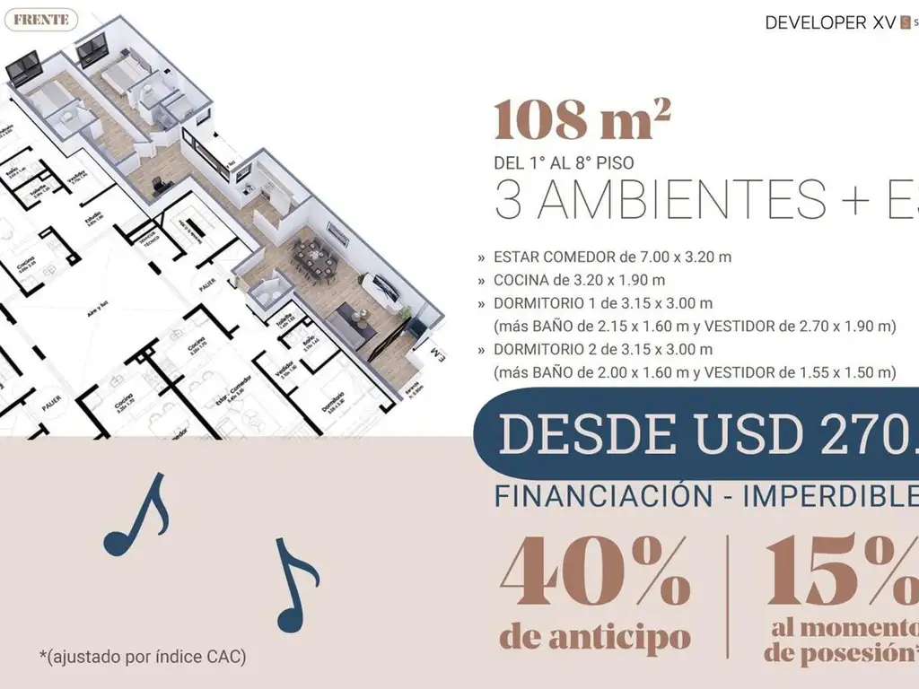 3 AMBIENTES con ESTUDIO - Developer XV Symphony 3